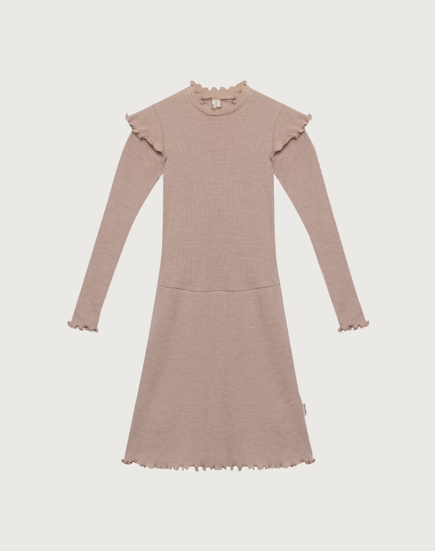 Til vores store pige har vi modtaget den fineste langærmede bluse samt kjole, som begge har flæser ved skuldrene, en undertrøje samt t-shirt med fin lille blondekant, og en langærmet bluse. Alt tøjet er i den lækreste bløde merinould og i fine rosa-agtige nuancer, som kan matches på kryds og tværs med de ting, vores datter allerede har.